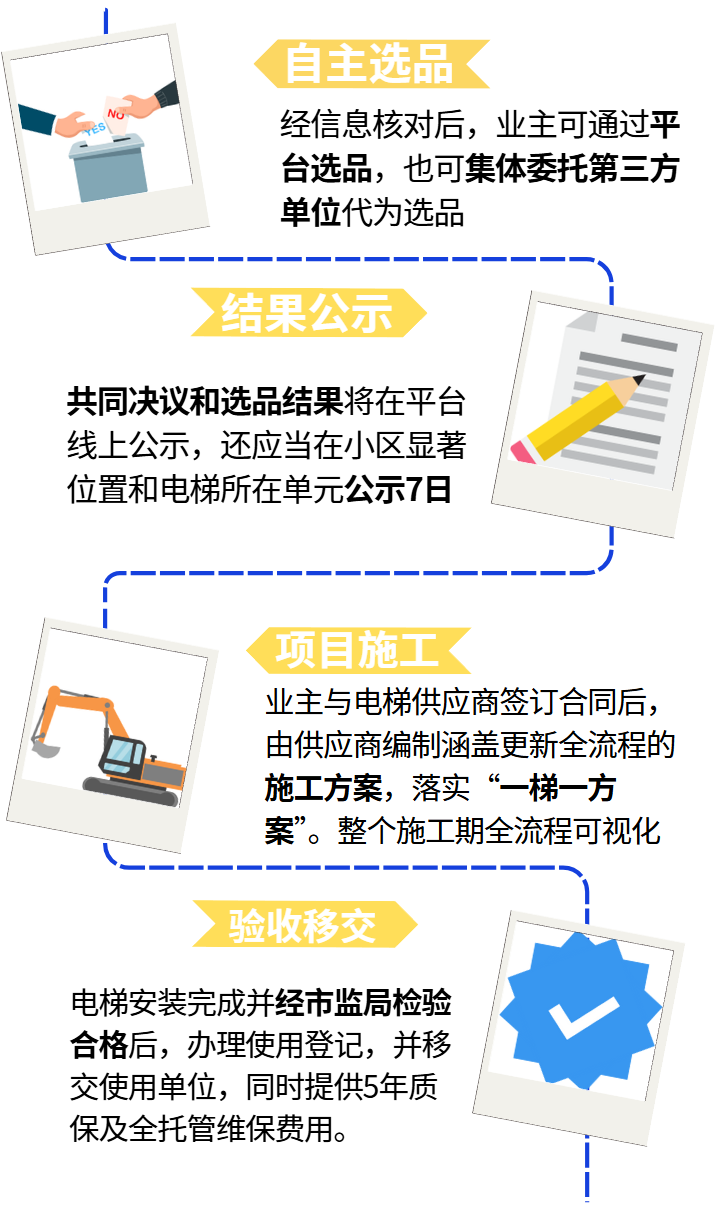 我市电梯更新一体化服务平台,是全国首个专门聚焦住宅老旧电梯更新的线上服务平台,成为破解电梯更新“流程繁琐、沟通不畅、信息不透明”等难题的“利器”。平台创新采用“淘宝投票”亲民模式,紧扣“政府引导、居民主导、政策扶持、阳光透明”核心,彻底打通老旧电梯更新的全流程服务链条,实现居民意见采集、国补申报、维修资金申请、施工安装、验收申报等全线上全流程功能服务,为更梯居民提供快速、便捷的服务通道,提升全流程线上办理效率和群众满意度。